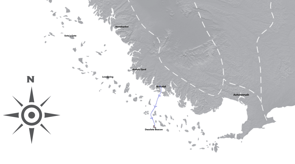 We had left Brokefall’s harbor at first light and, after pausing once we were far enough from shore to say words and commit Eos and Namba to the sea, we had made good time towards the Barrier. Though I had not known the two sailors who fell to the harrow brood, I participated in and witnessed the words to honor their loss.