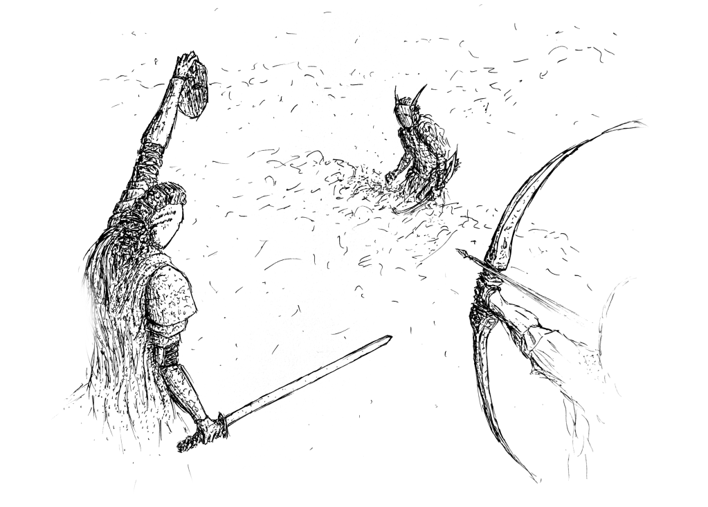 I nodded to Pella, arrow drawn, a sign to hold but stay ready. I glanced to the skirmish line at my back, shaken at the scream and sight of a masked but standing fast, whether because of or in spite of their growing terror. Mira caught me with her gaze, her eyes wide and sharp, either pleading or warning not to make things any worse than they already were. I flashed my best imitation of Pella’s brash smirk in response, they would get no worse, either peace would be made or the blade would soon swing.