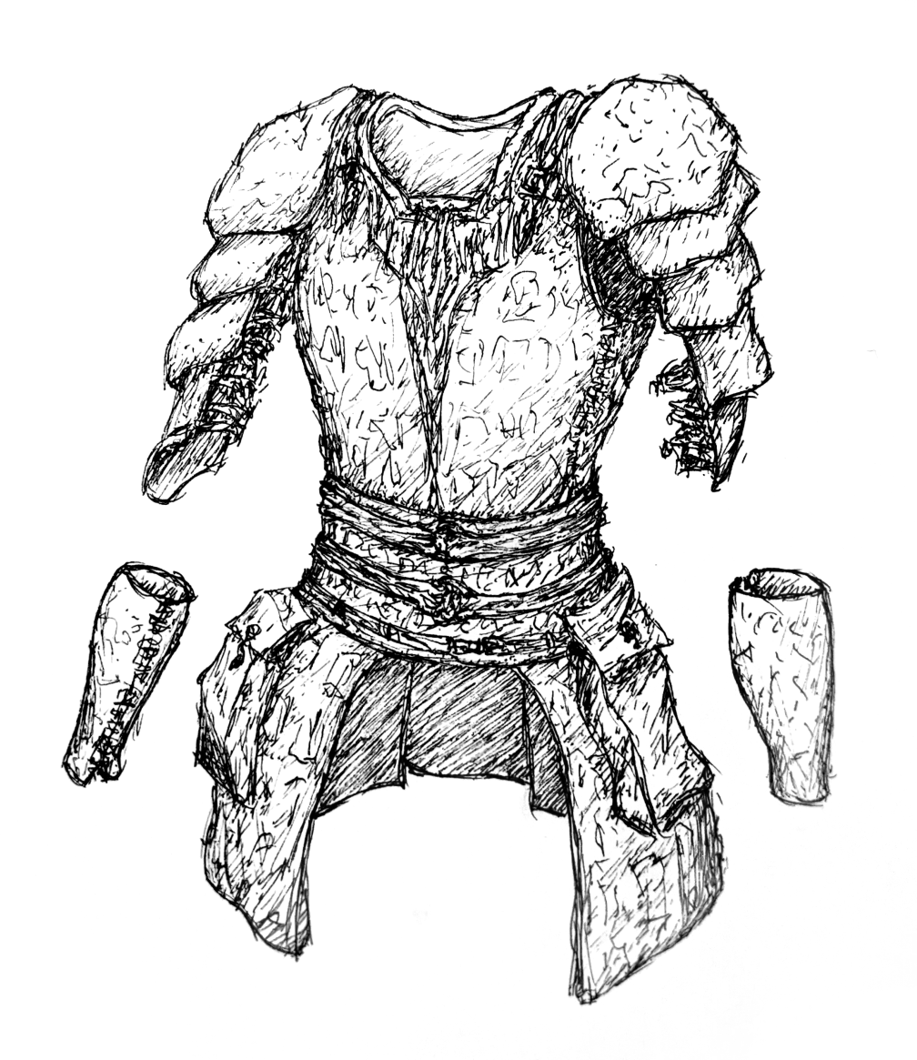 It was perfect! The leathers worn by the warcrews of the Reach and Barrier, by Nisas and his crew, by those that need protection from blade and fang, but also must climb and swim to survive. Thin but sturdy plates of leather, overlapping with each other to provide thicker protection while still segmented enough to bend with movement, not to hinder it. They did not feel heavy or limiting, I would still strike first and often while wearing them, and they were indeed thick enough around the chest and shoulders that there was a truth to Nisas’s teasing, they very well might have turned the hunter’s blade.