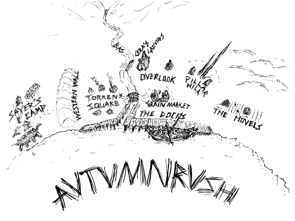 A small village on the mouth of fjord. A few dozen small buildings and an ancient but well maintained dock. Welcoming to travelers and surprisingly well stocked for trade on account of proximity to Autumnrush.